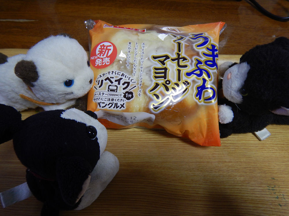 2023年12月の新商品ボリューム満点の大きな、ふっくらパンにマヨネーズとソーセージ。美味しいけど不満が一つ。