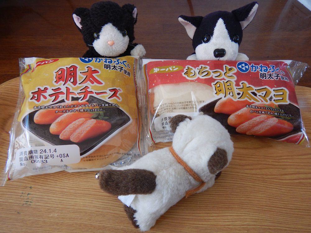 2024年1月の新商品「かねふく」ブランドの明太子を使用した明太子パンの食べ比べ。