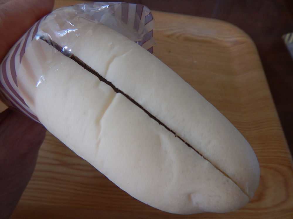 2024年1月の新商品もちもち細長いパンに濃厚な北海道ミルククリームと、甘さ控え目のベルギーチョコ入りのクリームの食べ比べ。