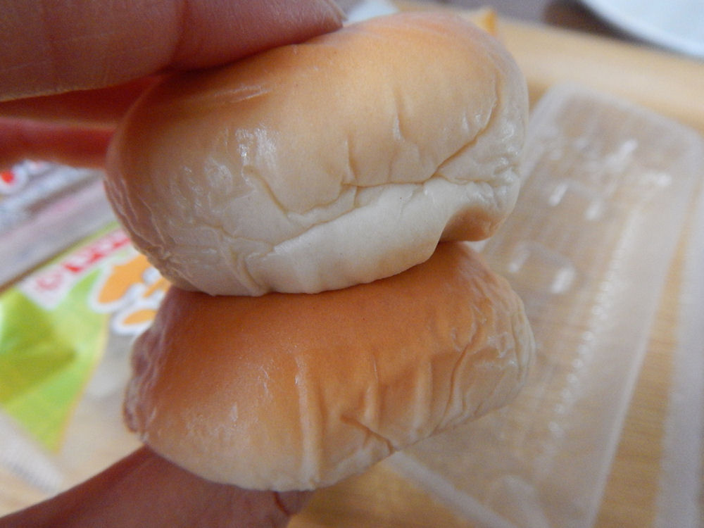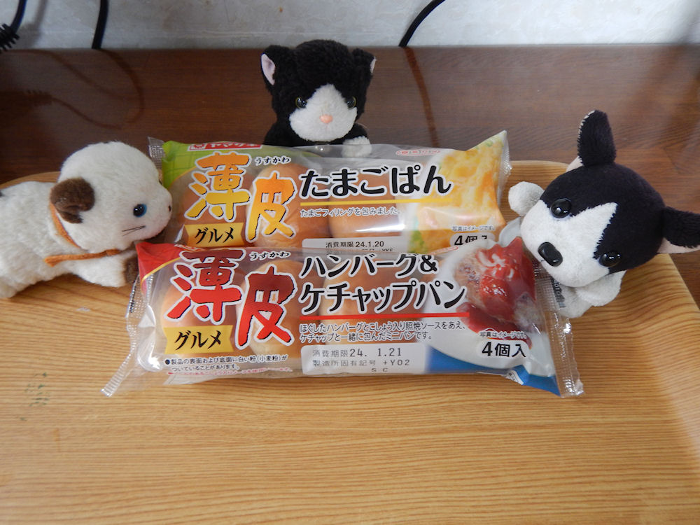 2024年1月の新商品一口サイズの薄皮グルメ。ケチャップが美味しいハンバーグと、玉子の甘味が美味しいたまごぱん。小さなパンなので一緒に食べてみました。